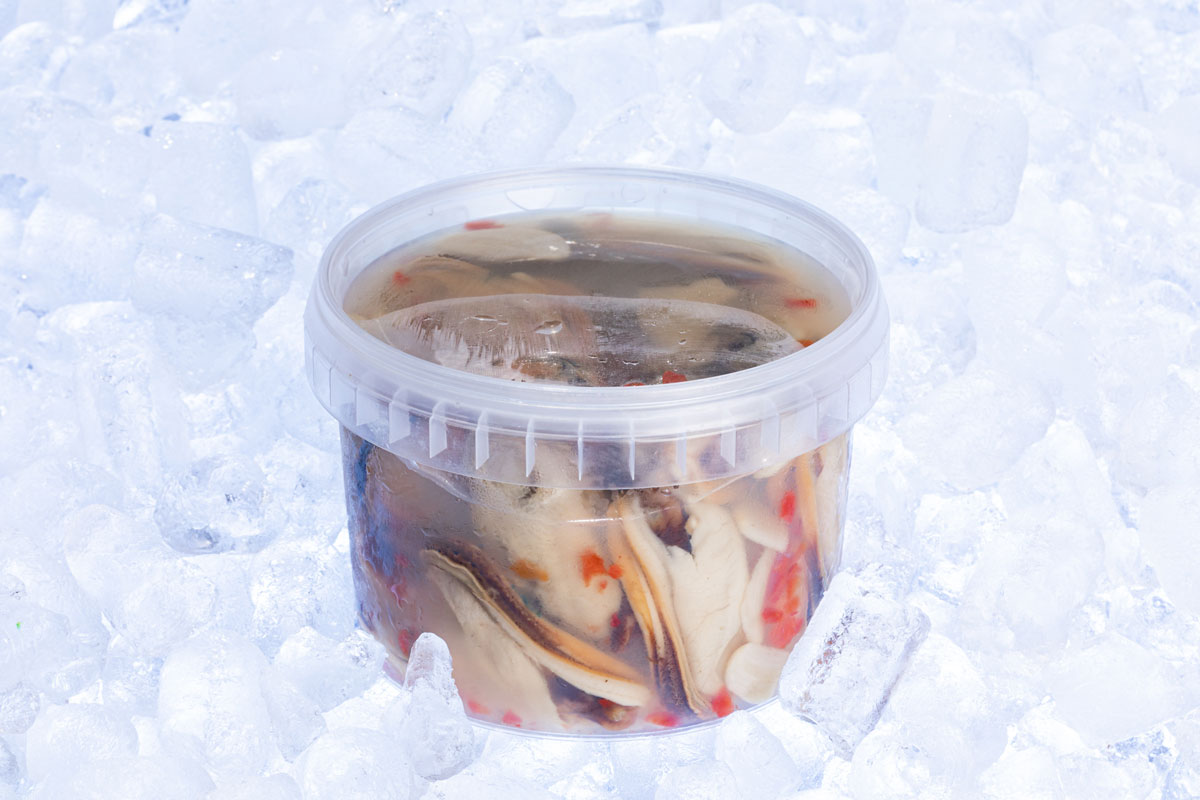 Premium New Zealand greenshell mussel meat which is marinated in a light vinegar flavoured with garlic, roasted bell pepper and jalapenos. 550g